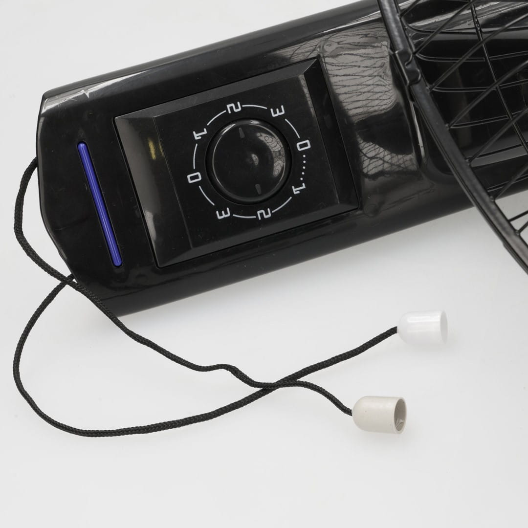 Er verfügt außerdem über einen beweglichen Kopf – eine Oszillation, die es dem Ventilator ermöglicht, sich um ca. 120 Grad zu drehen.
