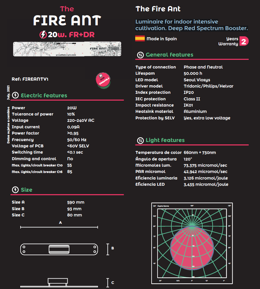 Fire Ant ist eine LED-Leuchte, die 660 nm + 730 nm kombiniert, einzigartig auf dem Markt, sodass Sie Ihre Pflanzen mit der täglichen Lichtmenge versorgen können, die sie zur Maximierung der Erträge benötigen.