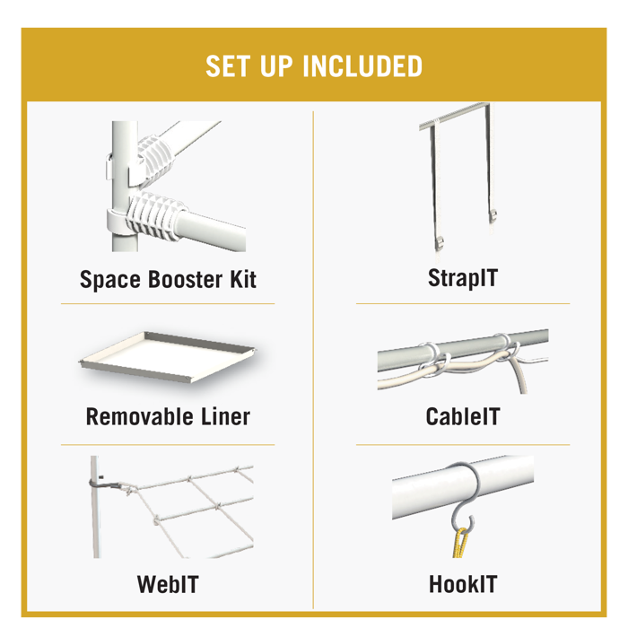 - 1x Space Booster – Verstärkungsrahmen bestehend aus übereinander aufgehängten Metallrohren