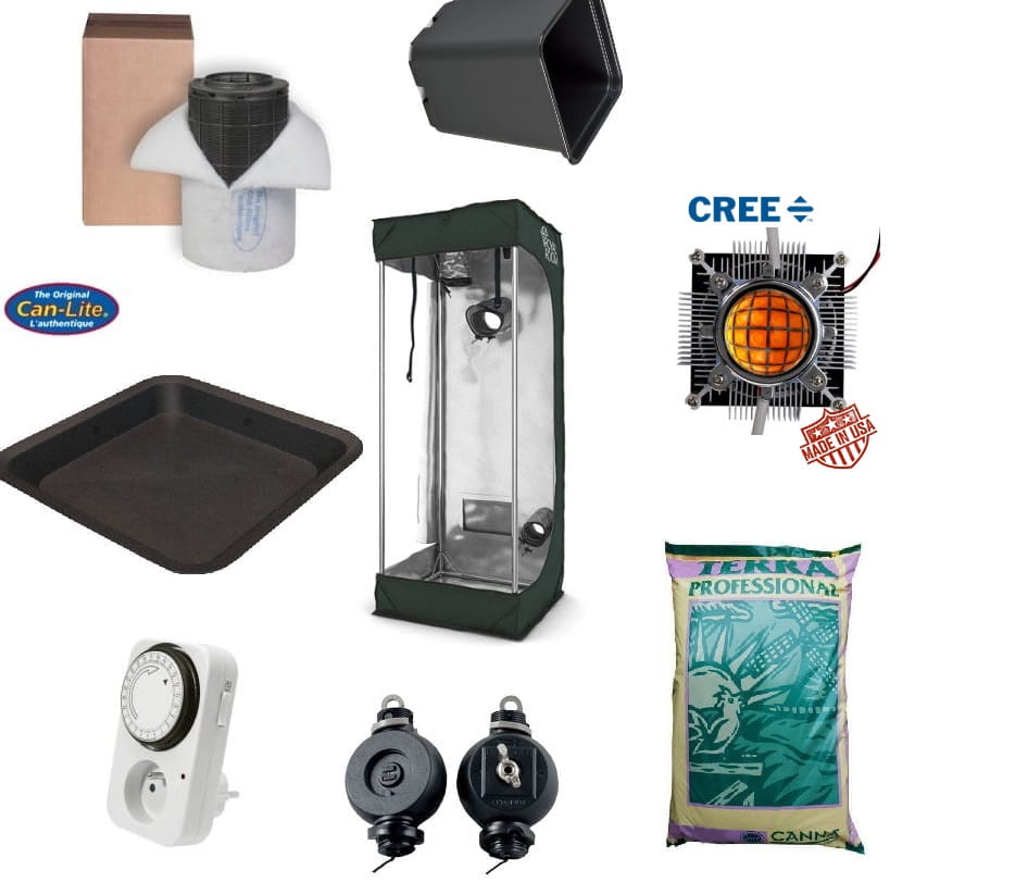 Komplettes Anzuchtset mit den Maßen 60x60x160cm mit kompletter Beleuchtung, Belüftung und Substrat.