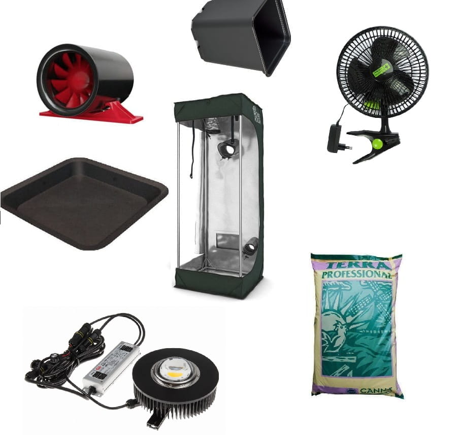 Komplettes LED-Anzuchtset mit den Maßen 60x60x160cm mit kompletter Beleuchtung, Belüftung und Substrat.