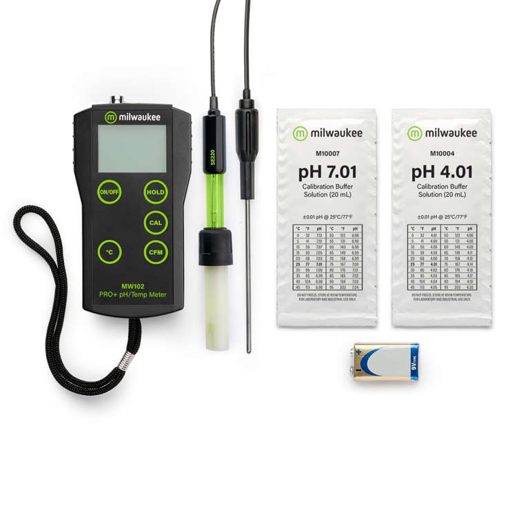 Das Milwaukee MW102 PRO+ pH-Messgerät hat dank seiner zuverlässigen, schnellen und einfachen Bedienung und Langlebigkeit Fans auf der ganzen Welt gewonnen. Genau auf ± 0,02 pH mit automatischer Temperaturkompensation.