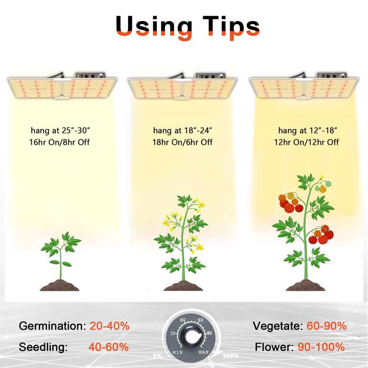 Verbesserte Lampen für SF2000 Pflanzen verfügen über ein neues Diodenarray mit mehr Lichtperlen an den Rändern und weniger in der Mitte, was zu einem gleichmäßigeren PPFD führt. Mit einem Dimmerknopf kann die Lichtintensität nach Bedarf angepasst werden, und die Kombination mehrerer Leuchten mit einheitlicher Dimmung ist besonders vorteilhaft für große Innenanbauflächen und kommerzielle Bepflanzungen.