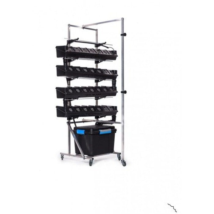 In diesem System gibt es kein Medium, die Wurzeln werden direkt in das Wasser gelegt, das durch das Bewässerungssystem über die gesamte Fläche jedes weiteren Behälters fließt und auch ohne Licht alle Wurzeln oxidiert (eliminiert die Algenbildung). ).