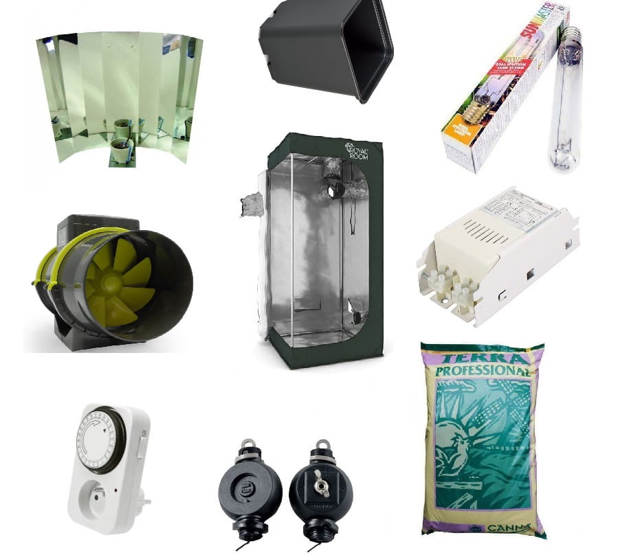 Komplettes Anzuchtset mit den Maßen 100x100x200cm mit voller Beleuchtung, Belüftung und Substrat.